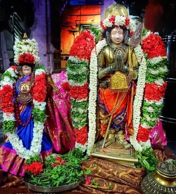 kumudhavalli nAchchiyAr is never separated from thirumangai AzhwAr; she is always present to the right of thirumangai AzhwAr. It is through kumudhavalli nAchchiyAr’s motivation that thirumangai AzhwAr became very involved and devoted to emperumAn. neelan (who was later known as thirumangai AzhwAr), attracted by the beautiful kumudhavalli nAchchiyAr, wished to marry her. But kumudhavalli nAchchiyAr put forth a condition that she will only marry a SrIvaishNava who has had pancha samskAram from an AchAryan, and agrees to accept him as her husband only when AzhwAr performs thadhiyArAdhanam for one full year for 1008 SrIvaishNavas every day without fail. AzhwAr agrees, fulfils her condition and then marries her. May thirumangai AzhwAr, who has kumudhavalli nAchchiyAr to his right, live long!