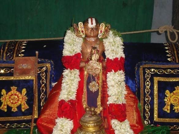 thirumalainambik kadimai seyyumavan vAzhiyE – gOvindhap perumAL performed all kainkaryams to periya thirumalai nambi tirelessly. Once, emperumAnAr saw gOvindhap perumAL while performing the kainkaryam of making the bed for periya thirumalai nambi, he saw gOvindhap perumAL was rolling on the bed and then coming down with satisfaction. Upon seeing the Sishya getting up after lying down on the AchArya’s bed, empErumAnAr called gOvindhap perumAL and questioned him, “Is it proper for you to do such a thing?”. gOvindhap perumAL replied, “Only if I lie down on the bed I will be able to adjust it in such a way that even a tiny piece of straw does not cause any discomfort to the AchArya” We learn that emperumAnAr was filled with wonder upon seeing his AchArya bhakthi. In this line, it is shown – may embAr, who performed all kainkaryams excellently for periya thirumalai nambi in this manner, live long (pallANdu)!